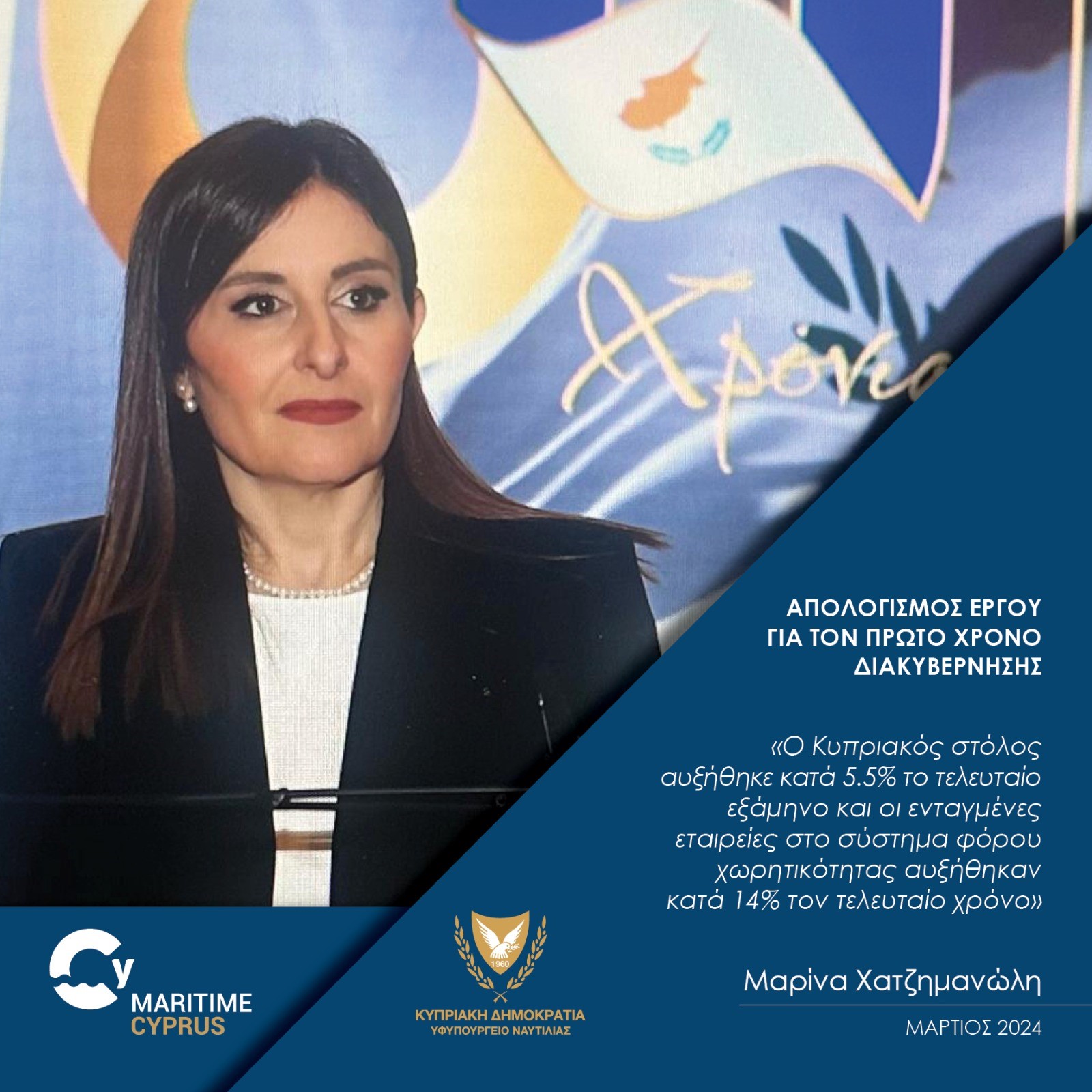 Το έργο και τις δράσεις του Υφυπουργείου Ναυτιλίας κατά τον πρώτο χρόνο διακυβέρνησης Νίκου Χριστοδουλίδη, παρουσίασε στις 28 Μαρτίου 2024, σε Διάσκεψη Τύπου, η Υφυπουργός Ναυτιλίας κα. Μαρίνα Χατζημανώλη.