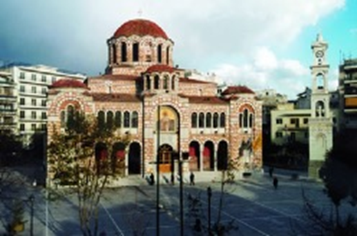 Ο Μητροπολιτικός Ναός της πόλης, η πρώτη από τις τρεις εκκλησίες που σχεδίασε ο Αρ. Ζάχος στο Βόλο, αποπερατώθηκε το 1934. Στο προαύλιο του Ναού διατηρείται το παλιό καμπαναριό, έργο του Ιταλού γλύπτη Previsan το 1884.